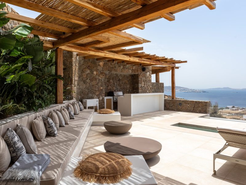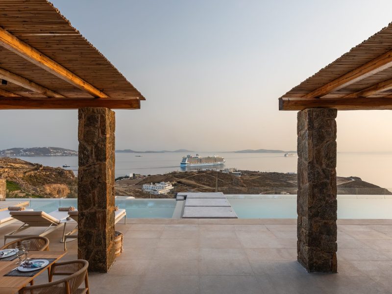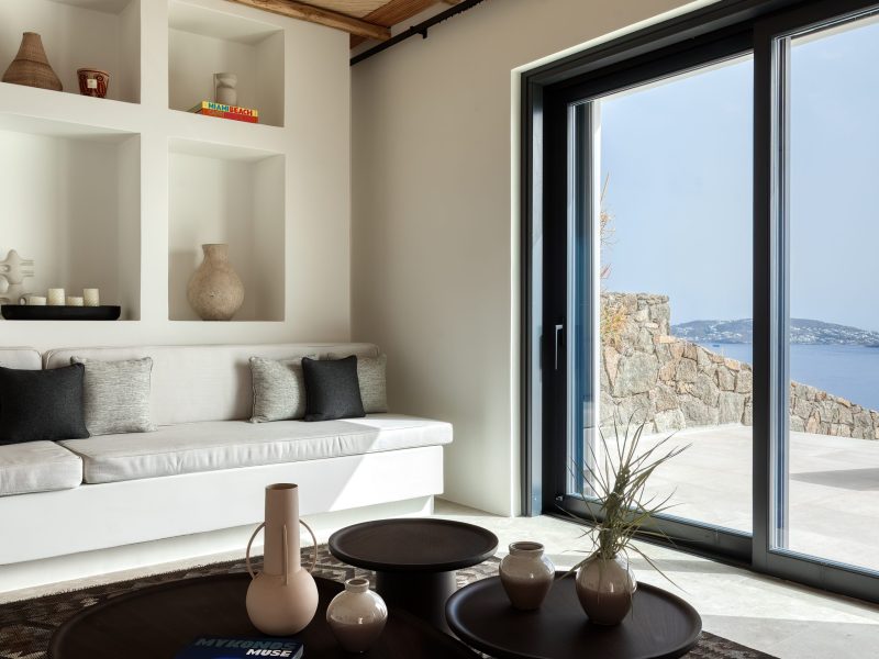Positioned just a short drive from Mykonos Town, guests have easy access to the island’s stunning beaches, vibrant nightlife, and cultural landmarks, while enjoying the privacy and peace of their villa retreat.
