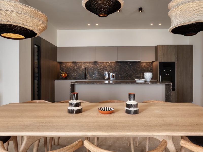 A state-of-the-art kitchen, fully equipped with premium appliances for casual meals or formal dining experiences.